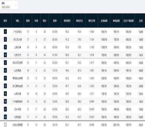 CBA积分榜最新排名!广东反超广厦杀回第一,北京惨败被打回原形